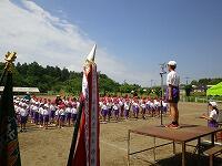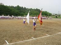運動会練習二日目は、国旗・校旗・応援旗・学年プラカードなどを持っての行進をしました。