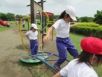 緑地公園では、いろいろな遊具で遊びました。