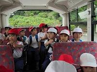 今日は、1年生が生活科の校外学習です。心配された雨も降ることなく、元気に出発!!