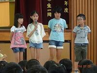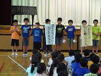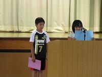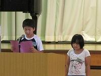 2年生と5年生の代表児童が、「1学期がんばったこと」を全校生の前で発表しました。