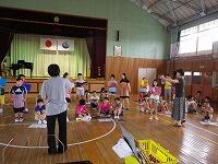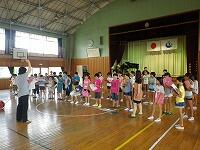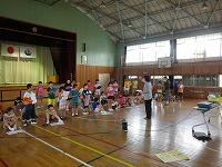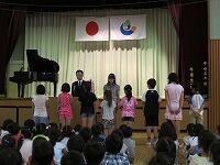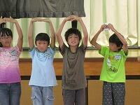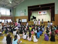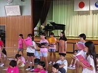 校庭では、朝からせみが大合唱。体育館には、さわやかな声が響きました。