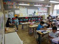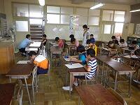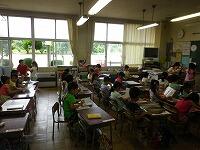 人数の多い4年生ではクラスを半分に分けて、しろやま教室も使って校長先生や岸先生と学習しています。