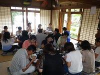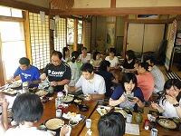 まずは、地元、「田舎茶屋」に集合。昼食から合流です。学校の教職員が11名、ボランティアのみなさんが9名、合計20名です。待ち時間には自己紹介をして、おそばをおいしくいただきました。