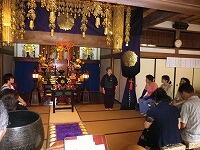 続いての見学先は、持明院(じみょういん)。お庭から本堂にまわり、こちらでもじっくりとお話を伺い、貴重な品々を見せていただきました。