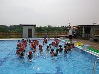 陸上練習の後には、さっぱりとプールでクーリングダウンしていく児童も多かったです。