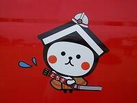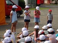 皆川城東小学校に来てくれた消防車には、かわいい「消防・とちすけ君」がプリントされていました。
