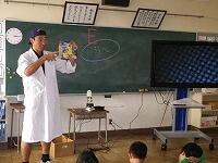 木曜日は子どもたちも楽しみにしているロング昼休みがあります。その昼休みの後半の時間帯を使って、今日も「でんじろう臼井先生」のミニ理科実験室が開催されました。