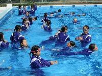 各学級では、夏休み明けの授業で泳力検定を行いましたが、片付け前の最後の授業は全学年で、『着衣水泳』を行いました。
