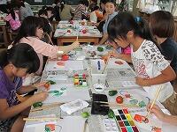 親子でそれぞれ、ピーマンとトマトの絵を描いて・・・・・すばらしい作品ができあがりました。