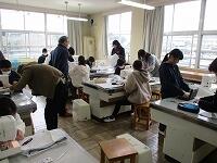 今日も5年生の家庭科の時間、ミシンの支援にアシストネット、保護者ボランティアの皆さんに来ていただきました。