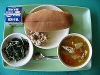 今日の献立は、ツナサンド、海藻サラダ、大豆入りカレースープです。