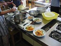 担任の先生から説明を受けた後、各班でジャーマンポテトやポテトサラダ等を作りました。