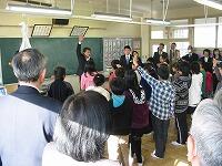 本校の教務主任から研究の概要を聞いていただいた後、5年生の英語の授業を参観していただきました。(英語の授業は、ネイティブな英語を話してくれるALTの先生と皆川中学校の英語の先生と皆川城東小学校の5年生担任の3人で行いました。)
