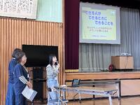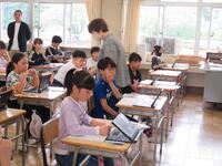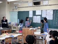 2年生は、動画や教師の説明を聞いた後、緊張しながら使い始めましたが、ボランティアの方に見守っていただきながら、安全に気を付けてカッターナイフを使うことができました。優しく上手な使い方をアドバイスしてくださいました。