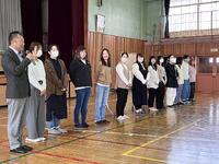みかも自然の家の先生にあいさつをし、リネンの取り付け方についての説明を受けました。