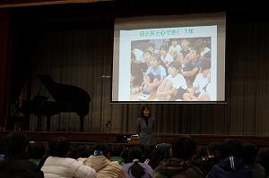 終業式の後、表彰式を行い、最後に児童指導の先生から、冬休みに気をつけることの話がありました。