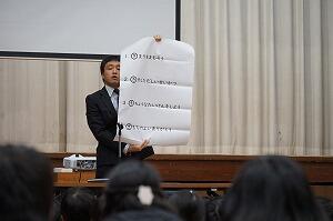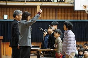 校長先生の話では、①「自信をつける3学期にしよう。」、②「ありがとうの気持ちを言葉や行動で表す3学期にしよう。」、③「ラストスパートの3学期。一日一日を大切にしよう。」という話と、「いじめのない(ほかの人の心や体を傷つけることのない)学校にしよう。」という話がありました。