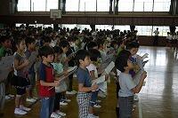 1学期の終業式が行われました。児童代表2名の作文発表の後、校長先生より夏休みに注意すること5つのポイントに関する話がありました。