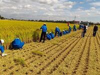 本校の5年生は毎年稲作体験をしています。学校近くの片柳様の水田一部をお借りして栽培しています。春に田植えをしたものを今日稲刈りをしました。5年生全員力を合わせて汗びっしょりになりながら活動しました。収穫した米を使い11月のPTA祭ではカレーライスを販売いたします。