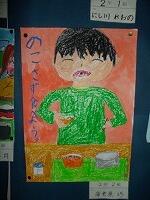 来週の20日より給食週間の取り組みが行われます。給食ポスターを募集し入賞作品が決まりました。入賞12点のうち今日は6点紹介いたします。