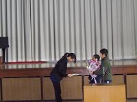 本日修了式が行われました。各クラスの代表に終了証書が校長先生より渡されました。一年間を振り返っての児童代表作文の発表がありました。今回の作文発表は一年生と四年生の二人が行いました。校長先生からは春休み中に新学年の目標を考えるという宿題が出されました。