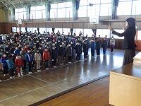 一覧へ 3学期始業式 投稿日時: 2015/01/08 南小管理者 明けましておめでとうございます!平成27年1月8日,239人(欠席5人・出停1人)でスタートしました。楽しい冬休みの思い出や3学期のめあてを発表してくれました。