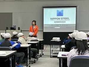 5年生がずっとずっと待っていた、臨海自然教室当日になりました。予定より少し早めに学校を出発し、とちぎ海浜自然の家に行く前に、社会科の勉強として、日本製鉄(株)東日本製鉄所鹿島地区を見学しました。鉄鉱石、コークス、石灰石、石炭をもとに、鉄ができるまでの様子を見学しました。真っ赤になった鉄の塊を少しずつ少しずつ薄くしていく工程では、工場内がとても暑くて驚きました。この後、港公園でお弁当を食べて、海浜自然の家へ向かいます。