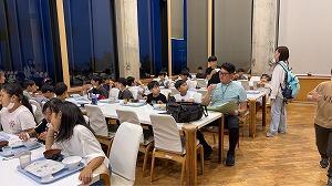 まずは、入所式とオリエンテーリング。代表児童のあいさつも、とても素晴らしかったです。オリエンテーションで館内の説明や注意事項などを聞いて、荷物を部屋に置いた後は、館内オリテーリングの時間です。自然の家があまりにも広いので、この活動を通して、食堂や大浴場など館内の場所の確認をする意味合いもあります。みんな、迷子にならないように必死に活動していました。