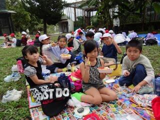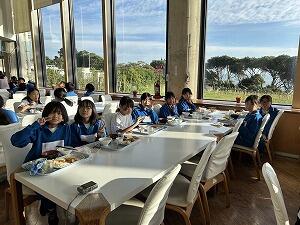 お昼&お買い物の様子です。お腹ペコペコの状態で、お家の方の作ってくださった美味しいお弁当に舌鼓をうちました。その後は楽しみにしていたお買い物です。何をお土産にしようか真剣に考えてようやく決まった品は思い出がたくさんつまった物となるでしょう。算数で学習したがい数も大いに役立ちました。