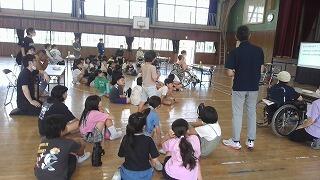 太鼓のつくりを教えていただいたり、お二人の太鼓の演奏を聴かせていただいたり、貴重な体験ができました。子どもたちは、集中して太鼓をたたき、体育館には、力強い太鼓の音と子どもたちの元気な掛け声が響き渡りました。