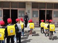 不審者侵入予定の1年1組の児童には、事前に犯人役や警察官の方を紹介し、安心して訓練に参加できるようにしました。