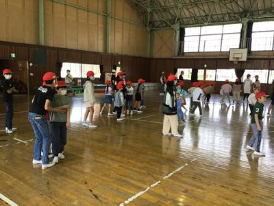 公共の場で決まりを守って行動することやグループの仲間と協力しながら活動できるようにすることがめあてです。