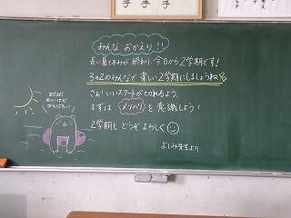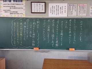 13日間の冬休みが終わり、子どもたちの声が学校で聞こえるようになりました。担任の先生も、教室の黒板に子どもたちへのメッセージを書いてお出迎えです。