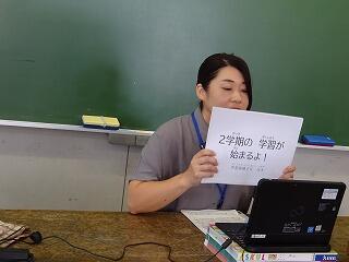 教室で新年のあいさつをし、宿題を集めたり、思い出話を聞いたりした後は、体育館で始業式です。