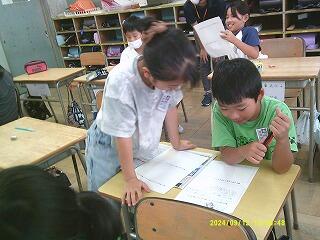 1年生の生活科で昔遊びを行いました。遊びの種類は、お手玉、けん玉、だるま落とし、あやとり、こま回し、竹とんぼです。どの遊びも楽しく遊び、最後には、教えてくださった方にメダルのプレゼントもしました。本日教えていただいた保護者のみなさま、ご協力ありがとうございました。