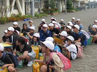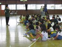 1月30日(木)昼休みに、予告なしで避難訓練を行いました。設定は「昼休みに自由に過ごしているときに地震が起こり、その後家庭科室から出火したため、校庭に避難する。」というものです。緊急放送が入ると、校庭で遊んでいた人もすぐに遊ぶのをやめてしゃがみこんで放送を聞くことができました。校舎内にいた人も「家庭科室から出火=家庭科室から遠ざかるように逃げる」と判断し、無事に避難できました。短時間で全員が避難できたのはとてもよかったです。