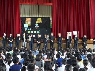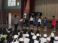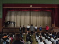その後、体育館に移動し、感謝の会を行いました。全校生から歌「小さな世界」のプレゼント。そして全校生を代表して、1年生から歌・演奏「きらきら星」のプレゼント。最後に花や手紙のプレゼントなど、日頃お世話になっている方へ、心を込めた贈り物をしました。