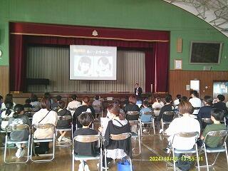 自分たちで調べたうずま川について、PowerPointを使って説明しました。