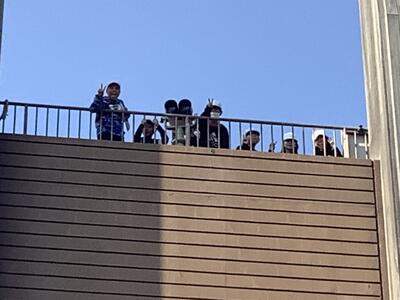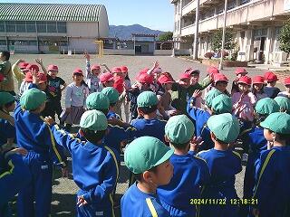最後に、校庭で在校生から見送りをしてもらいました。