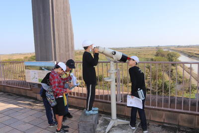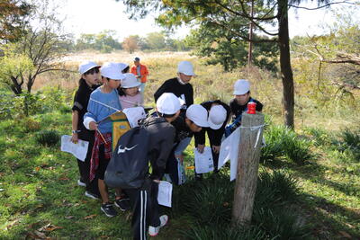 最初の活動は渡良瀬遊水地ウォークラリーです。チェックポイントをまわってクイズに答えます。難しい問題もあり、グループで知恵を出し合いながら活動しました。みんなで協力して長い距離を歩きました。互いに声をかけ、励まし合っている姿が素晴らしかったです。