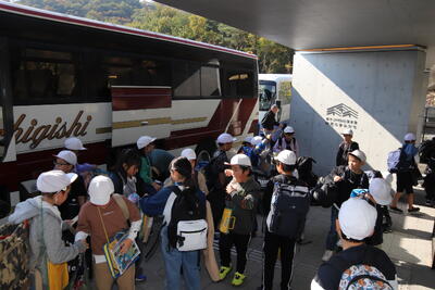 待ちに待った4年生の宿泊学習が始まりました。みんな元気いっぱいでスタートです。しっかりと話を聞いて、しおりを見て行動すること、5分前行動を守ること、グループで協力することを目標にしてがんばります。