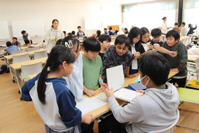 4年生は総合的な学習の時間に福祉の学習を行っています。自分たちの地域においてみんなが暮らしやすくなるための工夫はないか知りたいということで、文化会館と栃木駅にユニバーサルデザインを探しに行きました。車いすが入れる座席、多目的トイレ、スロープ、様々な言語で書かれた案内板など様々な工夫を見ることで、「こういう人に話を聞いてみたい」「これについてもっと調べてみよう」という意見が出ました。これからゲストティチャーを招いて話を聞いたり道具を使ったりしながら、より深く福祉の学習をしていきたいと考えています。