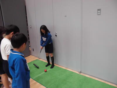 準備運動、アイスブレーキングの後に、「体つくりリレー」をしました。足を速く動かすにはどうしたらよいのかを考えた後、いろいろな歩き方(走り方)でリレーをしました。その後は「投げる運動」「走る運動」を組み合わせて、「一人キャッチボール」をしました。初めはなかなかうまくいきませんでしたが、コツを覚えて少しずつできるようになっていきました。「楽しい」と「たくさん動く(豊富な活動量)」の両立した1時間となりました。体力向上ETの島田先生には、秋にまた授業をしてもらう予定です。