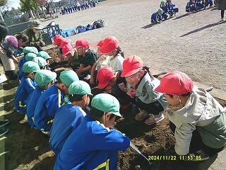 初めて田植え(手植え)をする児童も多く、思うように動けずに悪戦苦闘しながらも、楽しみながら、稲を植えました。今回の田植え体験を通して、農家の方の大変さや、お米ができるまでなどについて、少しですが知ることができました。お米については今後、社会科で学習していきます。