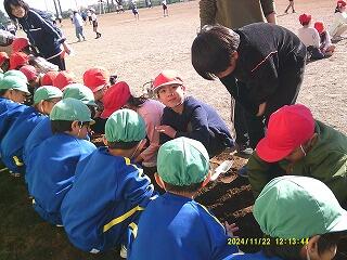 社会科「米作りのさかんな地域」、理科「植物の発芽と成長」等の学習の一環として行いました。農園ボランティアの天谷さん、林さんの指導を受けながら、田植えを行いました。