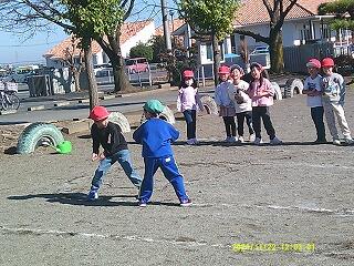 <1年生 桜の花びら舞う校庭で 元気に遊びました>