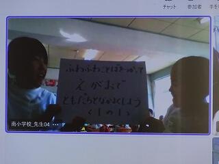 計画委員の児童が中心となって、全校でじゃんけん列車や南小クイズを行いました。