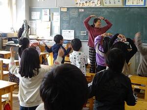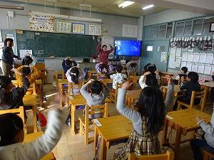 世界のいろいろな曲を迫力ある大きな声で歌ってくださり、みんな大喜び 途中の「私のお父さん」では、本校職員もゲスト参戦し、子どもたちはますます盛り上がりました