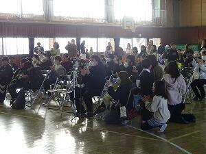 校長先生と係の先生の話を聞いた後、一度教室に戻り、次は保護者への引き渡し訓練です。実際の災害を想定して、保護者にも徒歩や自転車で来校していただき、短時間かつ安全で確実に保護者に引き渡すことができました。