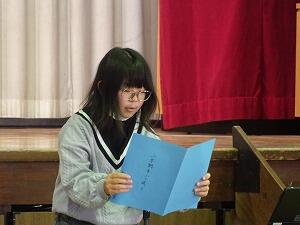 いよいよ「別れのことば」です。卒業生からは今までの思い出と教職員・家族等への感謝、そして在校生への激励、在校生からはお礼とお祝いの言葉を心を込めて言い合います。